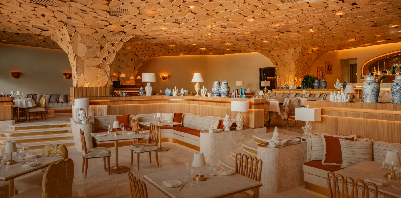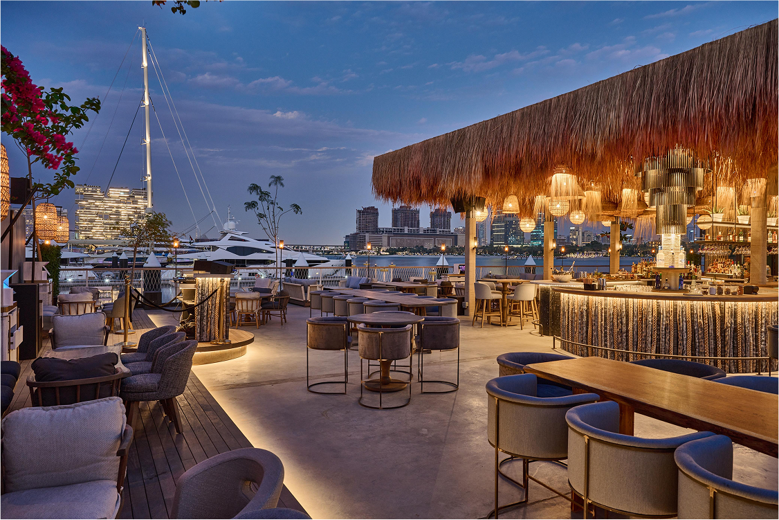 A modern lounge with a serious sense of fun, offering a fusion of cuisines, playful drinks, and a hookah menu, on Dubai’s beachside.